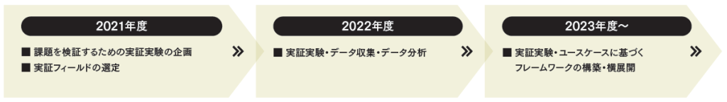 • 近い将来の社会・個人の課題、価値観、AI技術から、 AI・データ活用のアイディアを発想し、その検証・実証を通してユースケースを策定する。