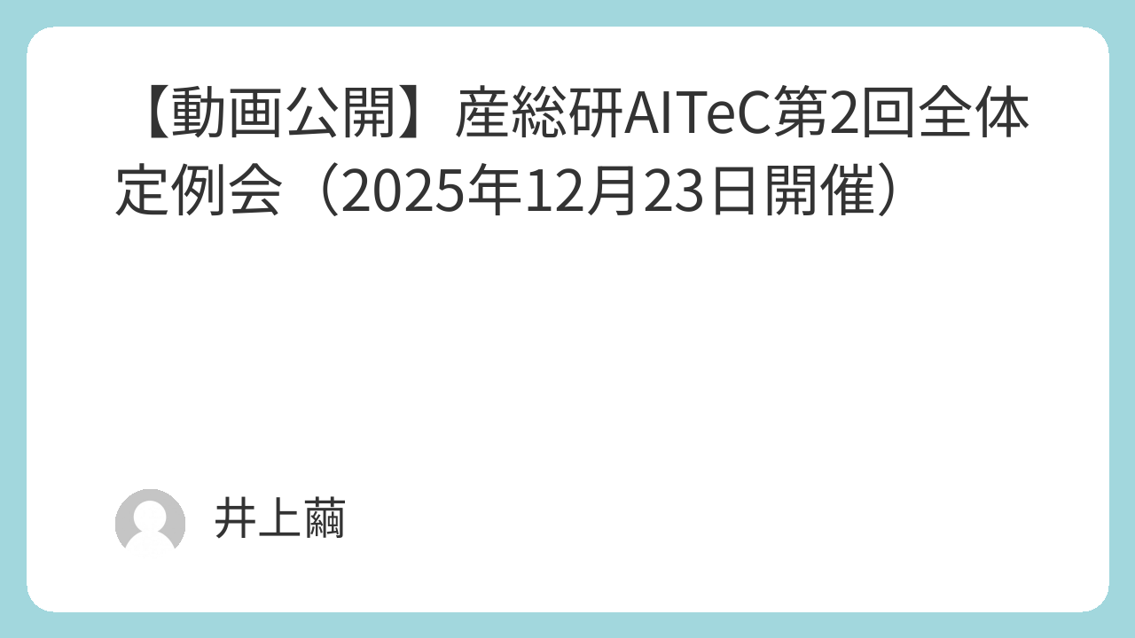 事務局2025年12月23日に開催されました第2回全体定例会「産業界におけるAI技術利活用の今後」の収録動画を公開させていただきましたのでお知らせいたします。