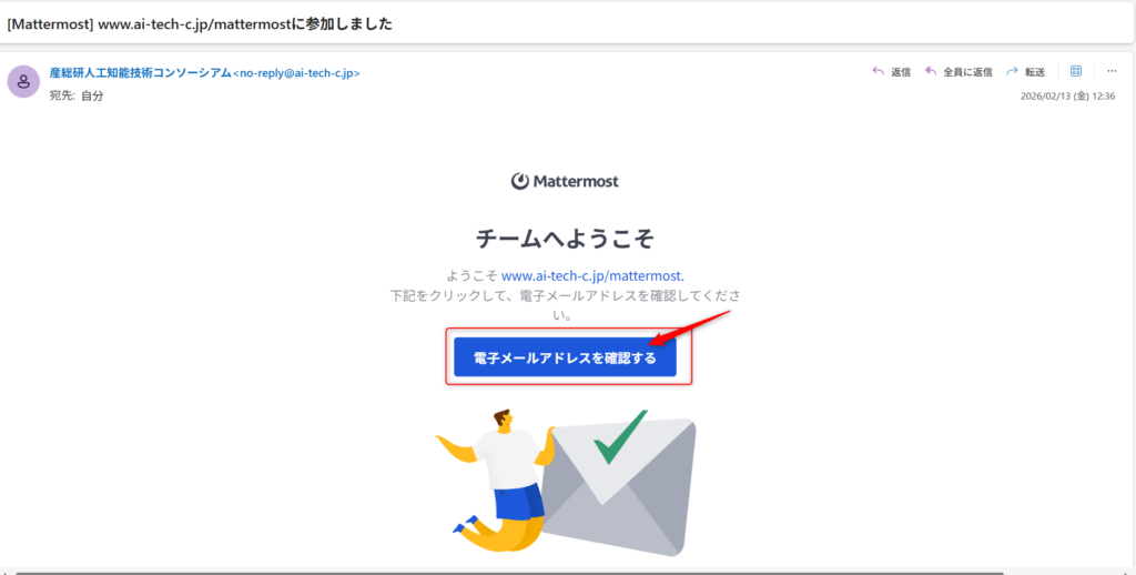 (1)件名が「www.ai-tech-c-.jp/mattermostに参加しました」というメールを探します。