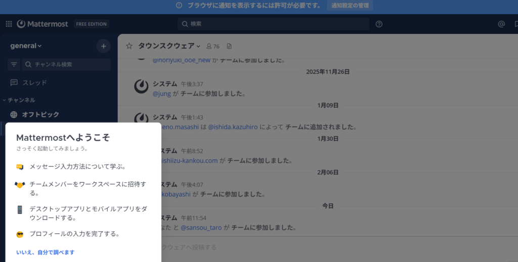 Mattermostは人工知能技術コンソーシアムの会員で利用するオープンチャットです。
