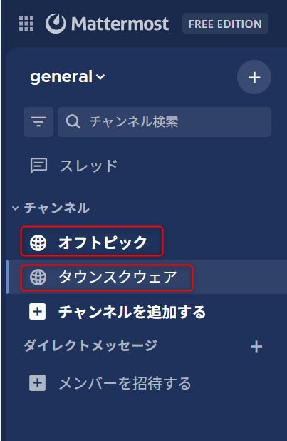 10.事務局からの招待の場合、「オフトピック」「タウンスクウェア」の2つが招待されます